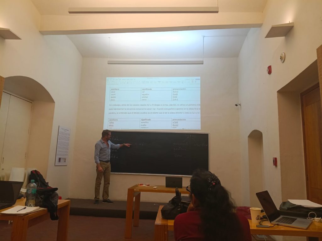El 06 y 07 de febrero de 2025 se llevaron a cabo las primeras dos semanas del semestre 2025-II del taller ” Filologia Mixteca: Tradiciones literarias de la Mixteca oaxaqueña”, organizado por el IIFL- UNAM y la BIJC-FAHHO. Este taller, impartido por los Dres. Michael Swanton y Sebastián van Doesburg, permitió a los participantes realizar análisis, lectura y estudio tanto de su lengua como de documentos escritos en el siglo XVI.